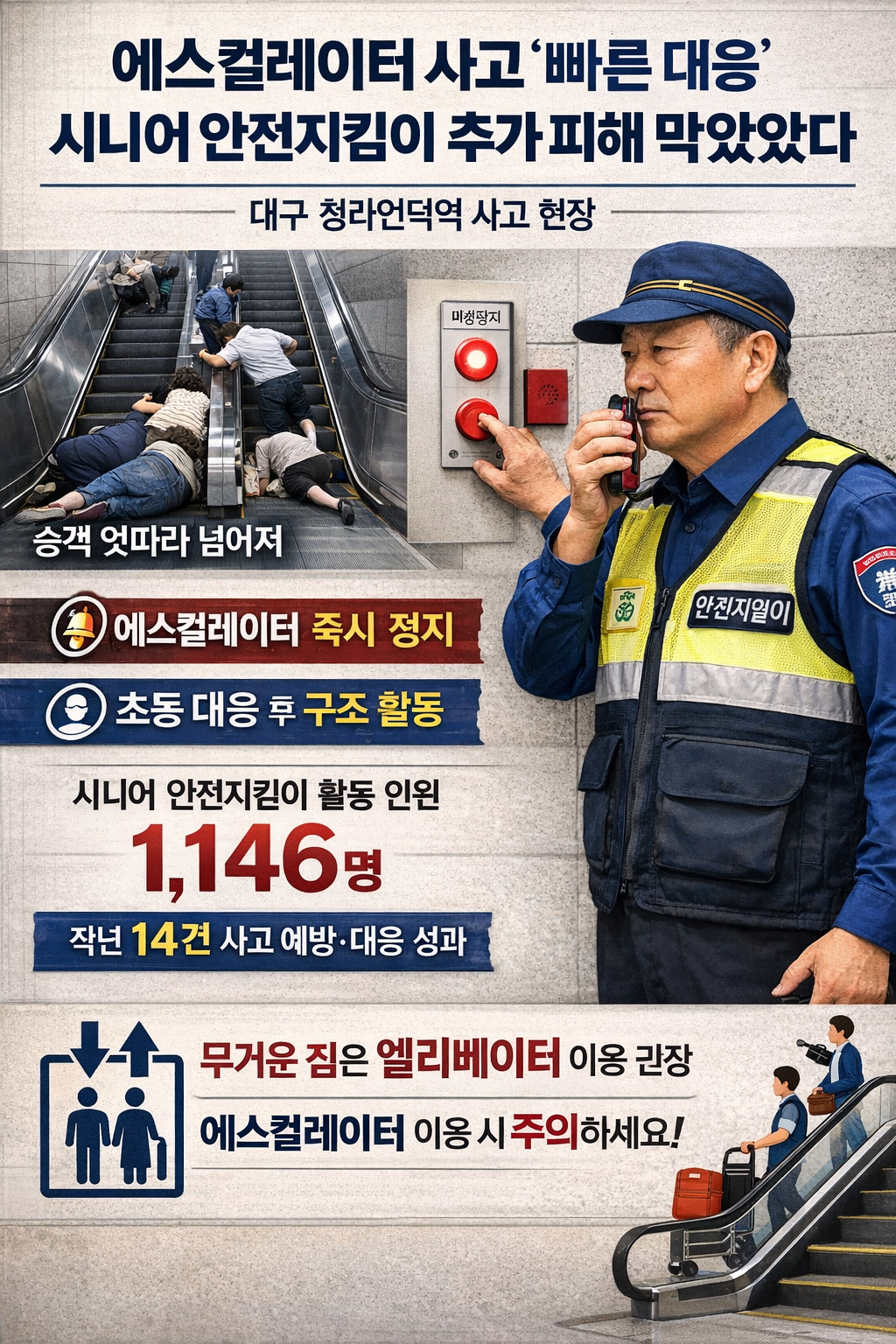 대구 지하철 에스컬레이터 사고는 시니어 안전지킴이의 빠른 대응으로 더 큰 피해를 막았고, 현장 안전 인력의 역할을 다시 보여준 사례였습니다.