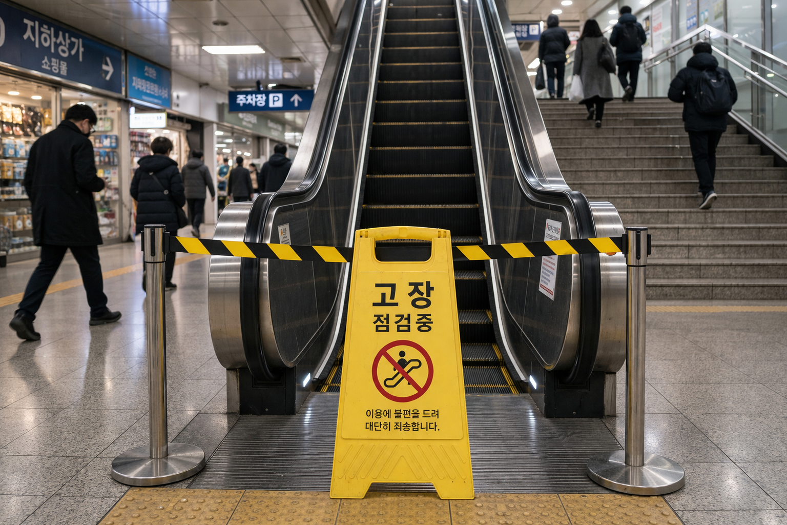 천안역 지하상가 에스컬레이터 보름 넘게 멈춤… 보험 지연에 현장 불편만 커진다