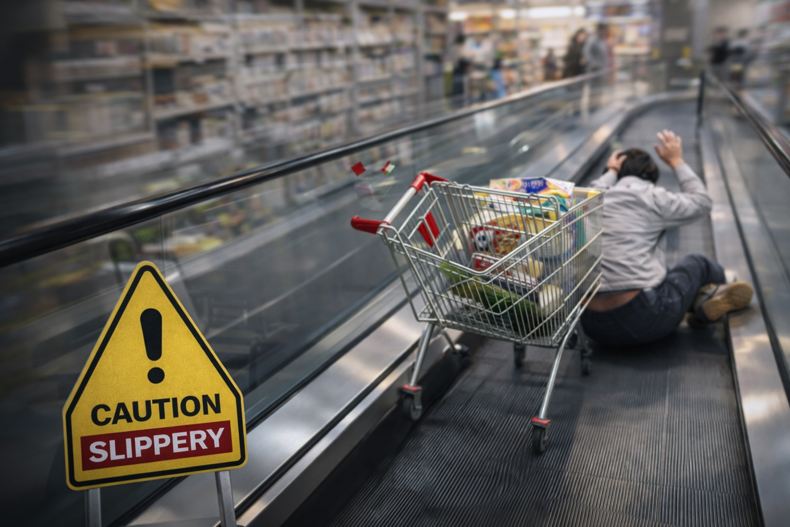 사고는 매장 내 무빙워크에서 벌어졌습니다. 다른 고객이 사용하던 쇼핑카트가 제대로 고정되지 않은 채 아래로 미끄러졌고, 뒤에 있던 이용객을 들이받아 부상을 입힌 것입니다. 겉으로 보기에는 고객 한 명이 카트를 놓친 개인 사고처럼 보일 수 있지만, 법원은 그 배경을 더 넓게 봤습니다.