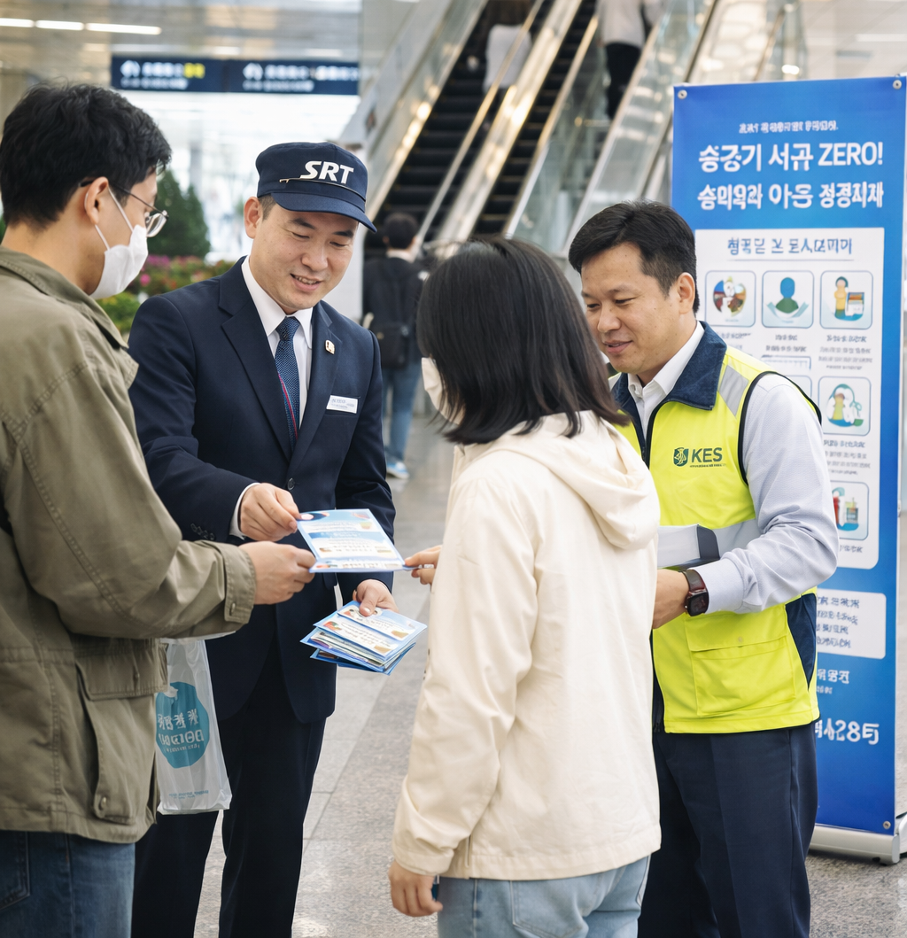 에스알은 13일 서울 수서역에서 한국승강기안전공단 강남지사와 함께 승강기 안전사고 예방을 위한 합동 캠페인을 펼쳤다고 밝혔다. 이번 활동은 역사 안에서 승강기를 보다 안전하게 이용할 수 있는 문화를 확산하고, 사고 가능성을 미리 줄이기 위해 마련됐다.
