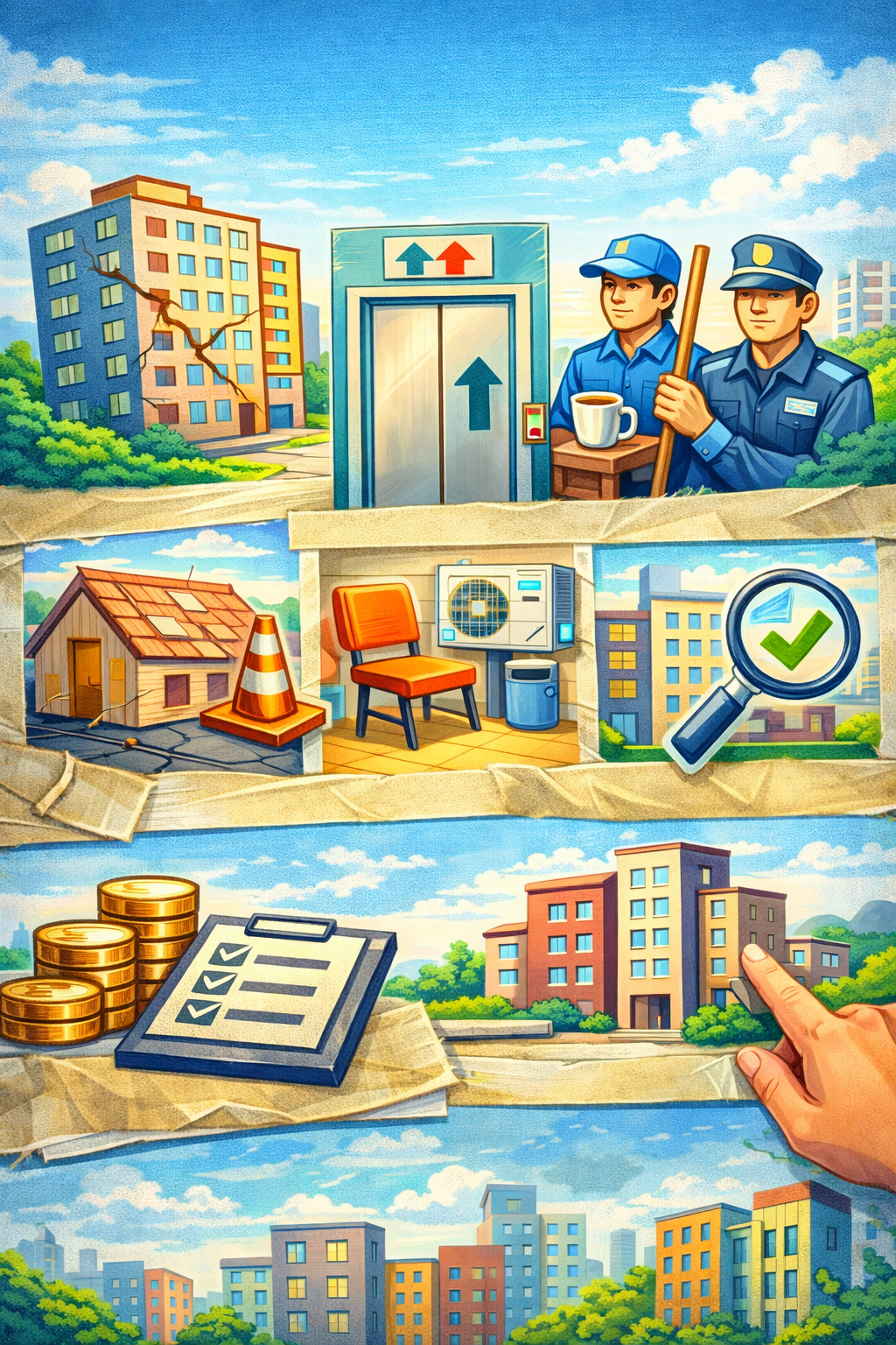 소규모 공동주택에 대한 안전점검 지원도 포함됐습니다. 엘리베이터나 중앙난방 설비가 없어 의무관리 대상에서 빠졌던 단지까지 지원 범위를 넓혀 관리 사각지대를 줄이겠다는 취지입니다. 다만 점검 이후 실제 보수공사는 각 단지가 자체적으로 진행해야 한다는 점은 한계로 남습니다.