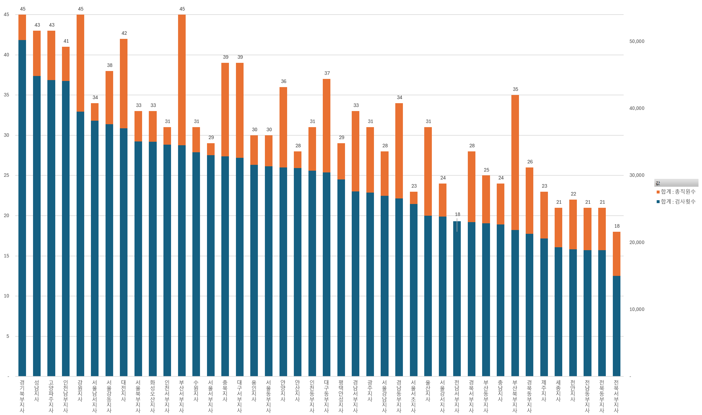 2025년 기준, 검사 횟수가 가장 많았던 지사는 다음과 같다.
