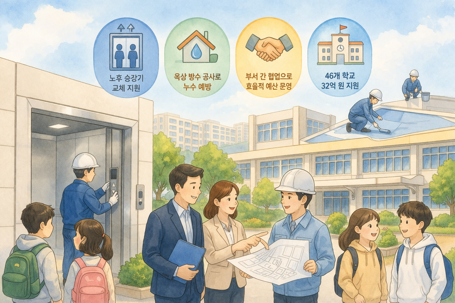 안양과천교육지원청은 32억 원을 들여 46개 학교의 노후 승강기와 누수 취약 시설 등을 먼저 정비하며 학생 안전 중심의 환경 개선에 나섭니다.